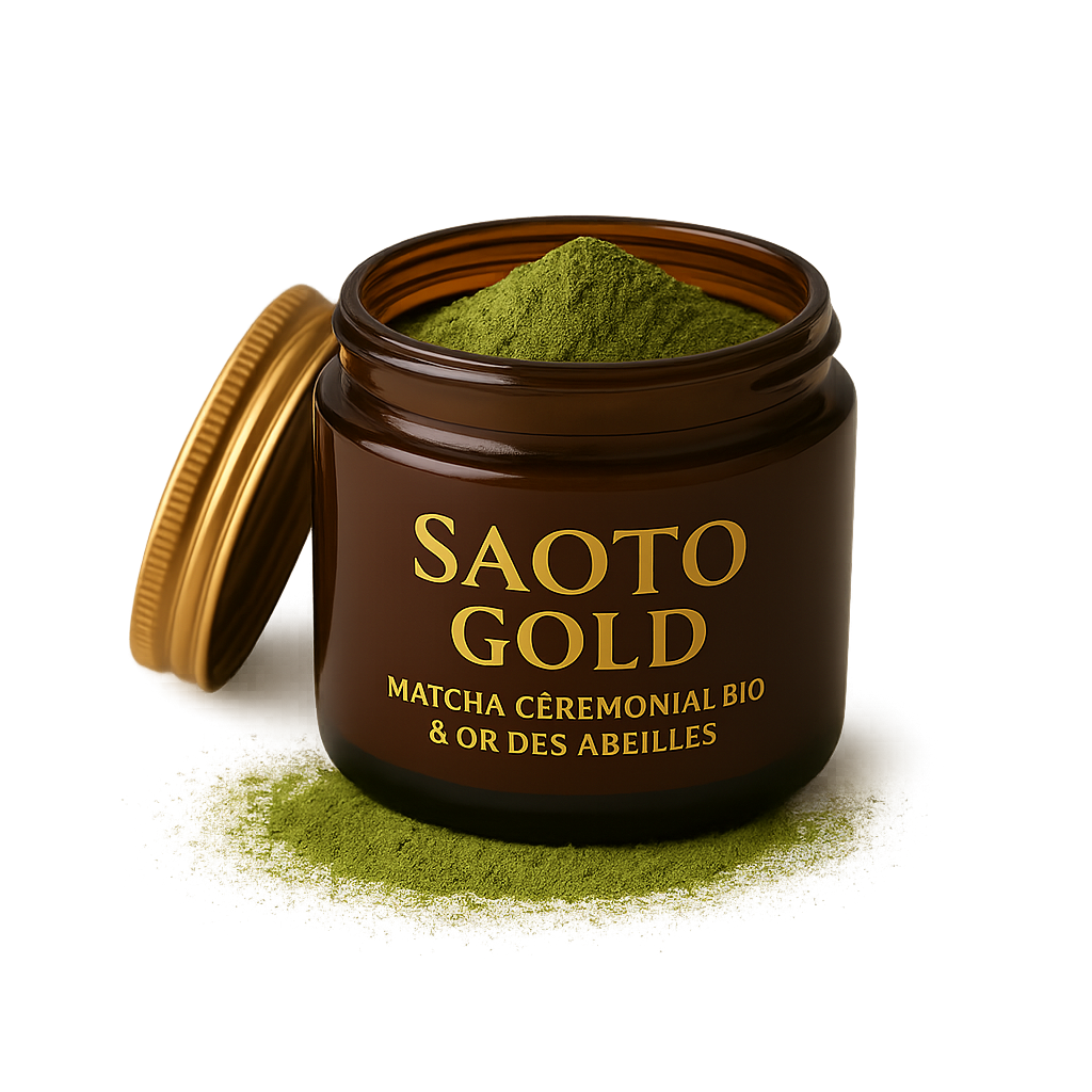 SAOTO GOLD, c’est une alliance rare : un matcha cérémonial bio de haute qualité, associé à l’or des abeilles – un pollen d’exception. Chaque dose est pensée comme un rituel : revitalisant, luxueux, et profondément bienfaisant.